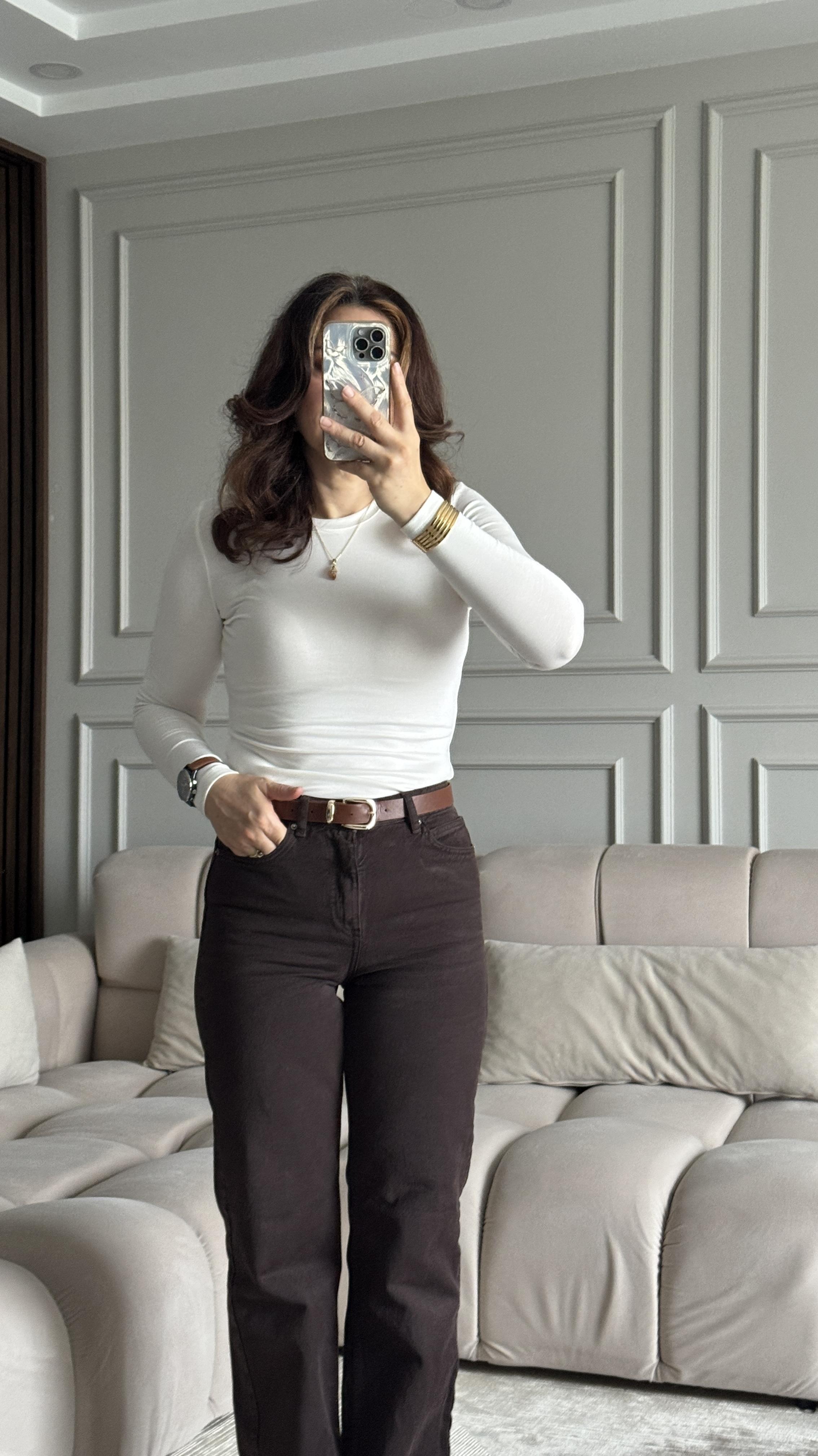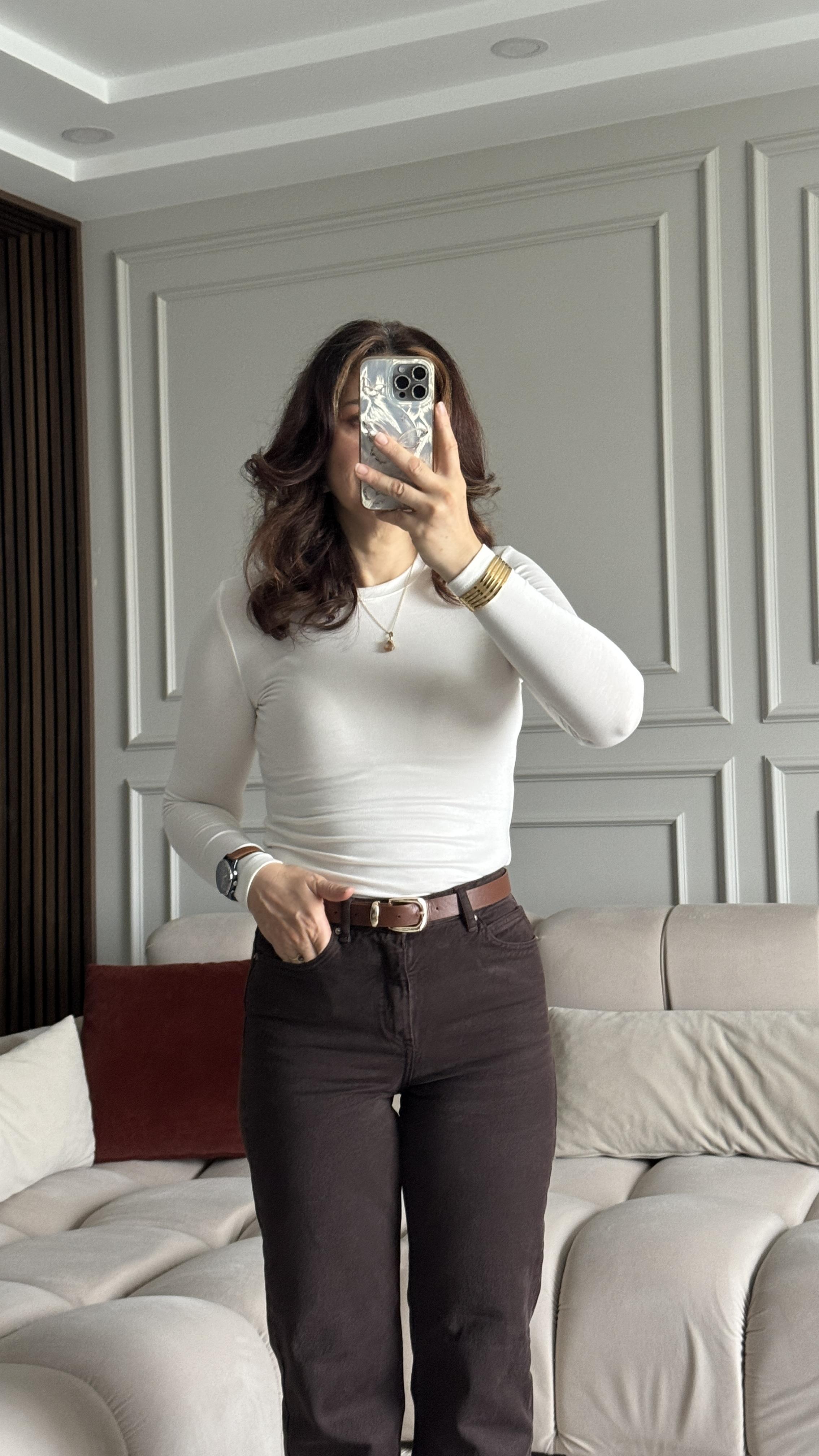 Ekru Oysho Uzun Kollu Badi