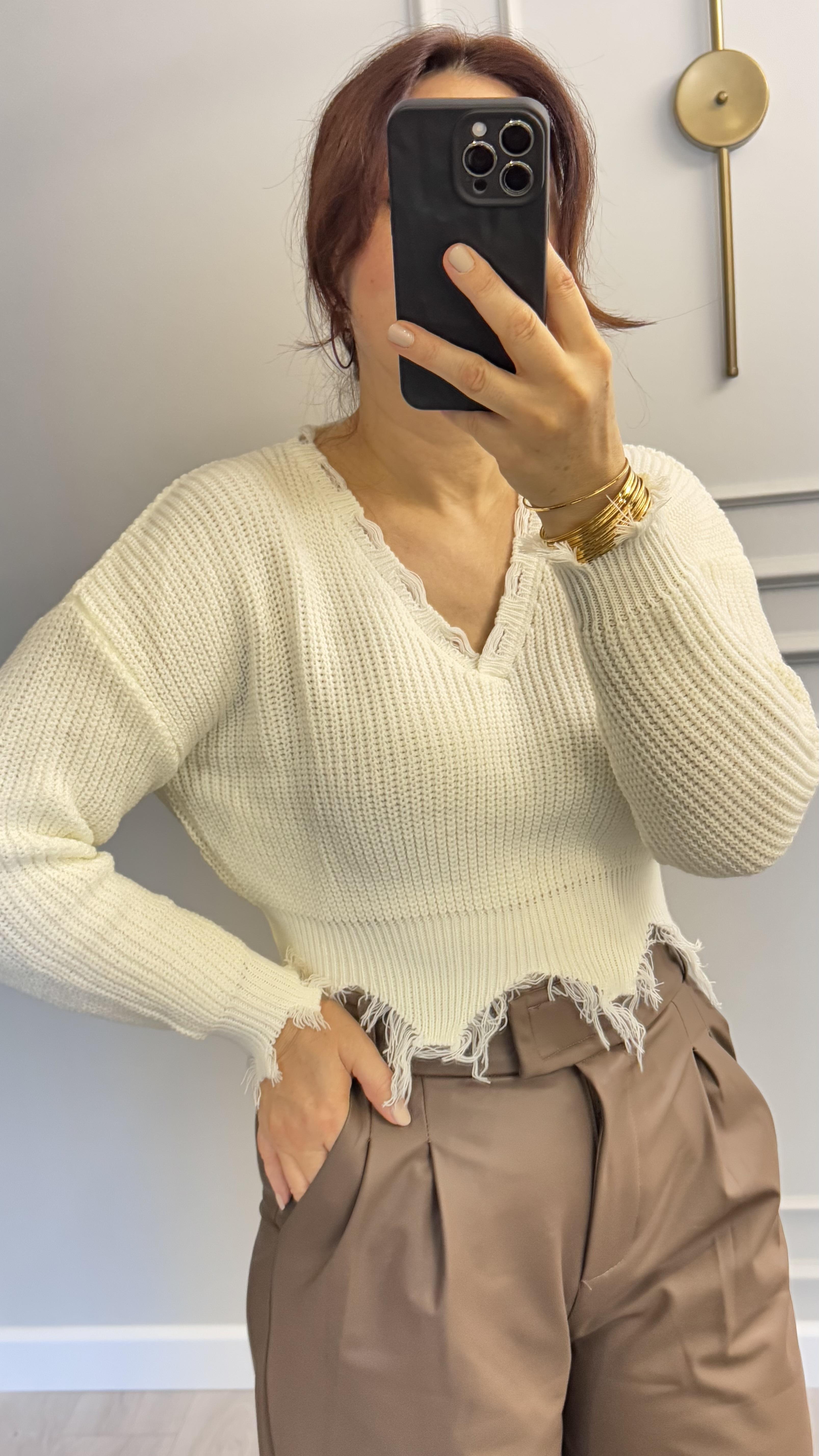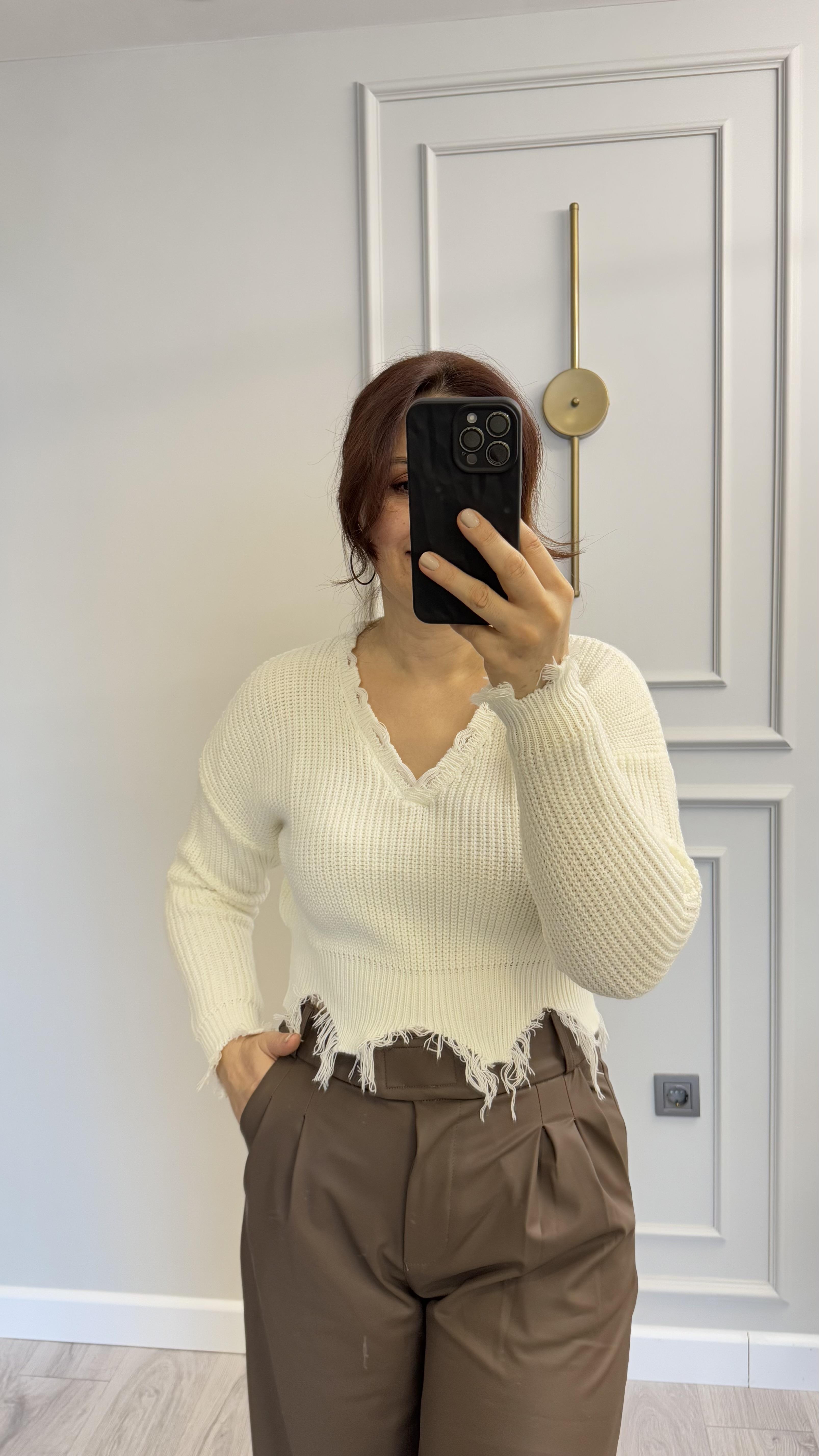 Sökük Detaylı Crop Kazak