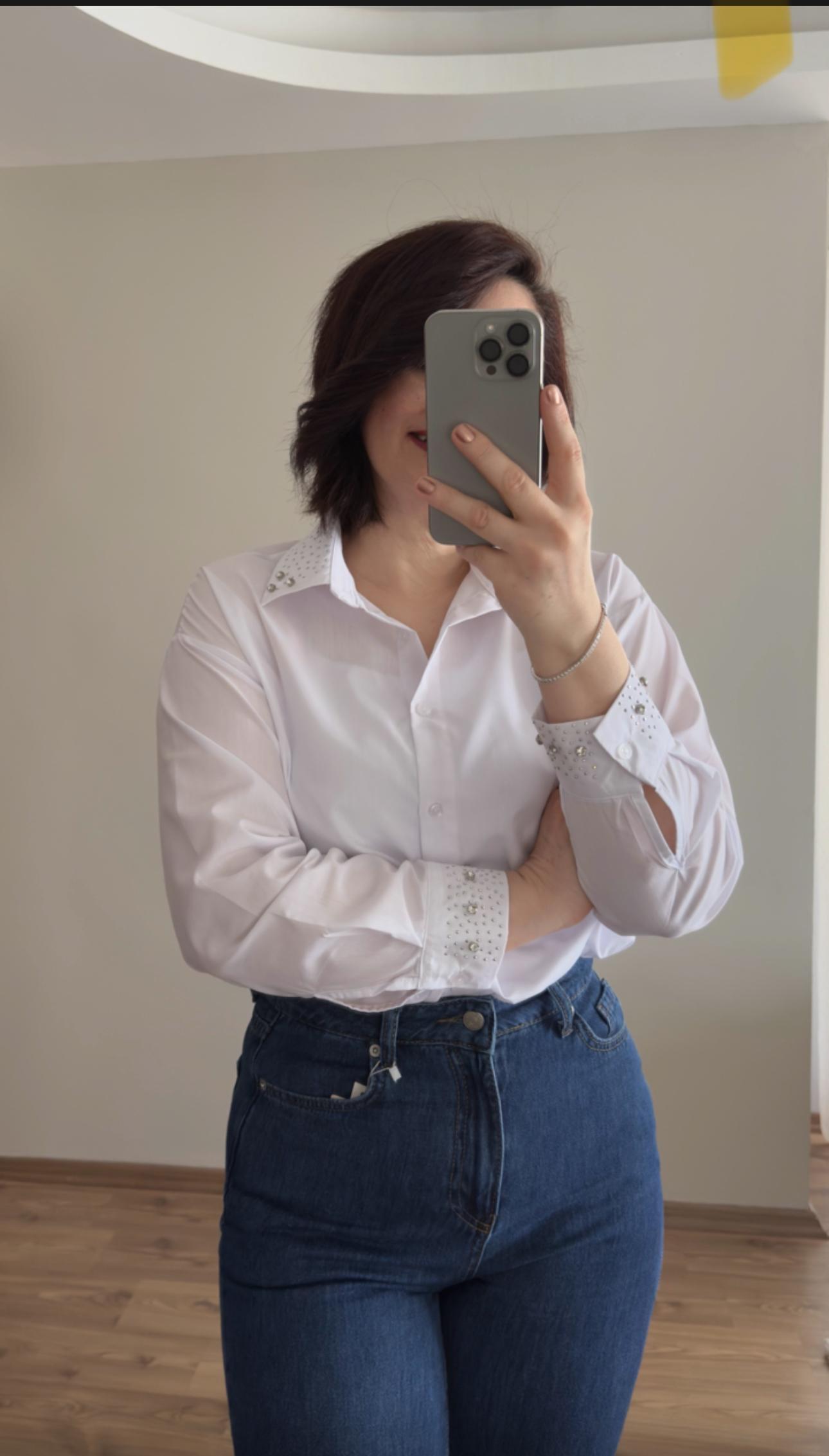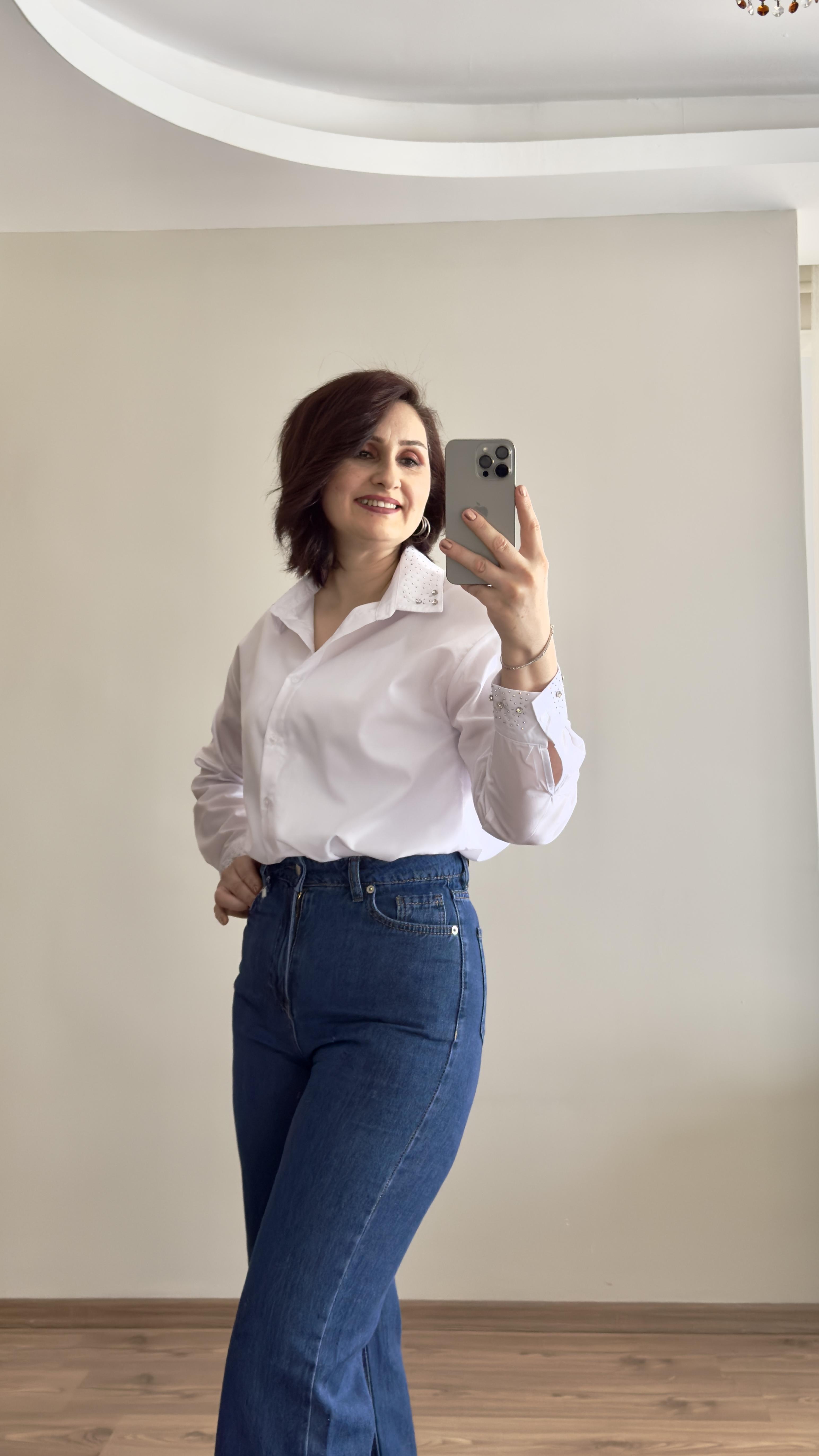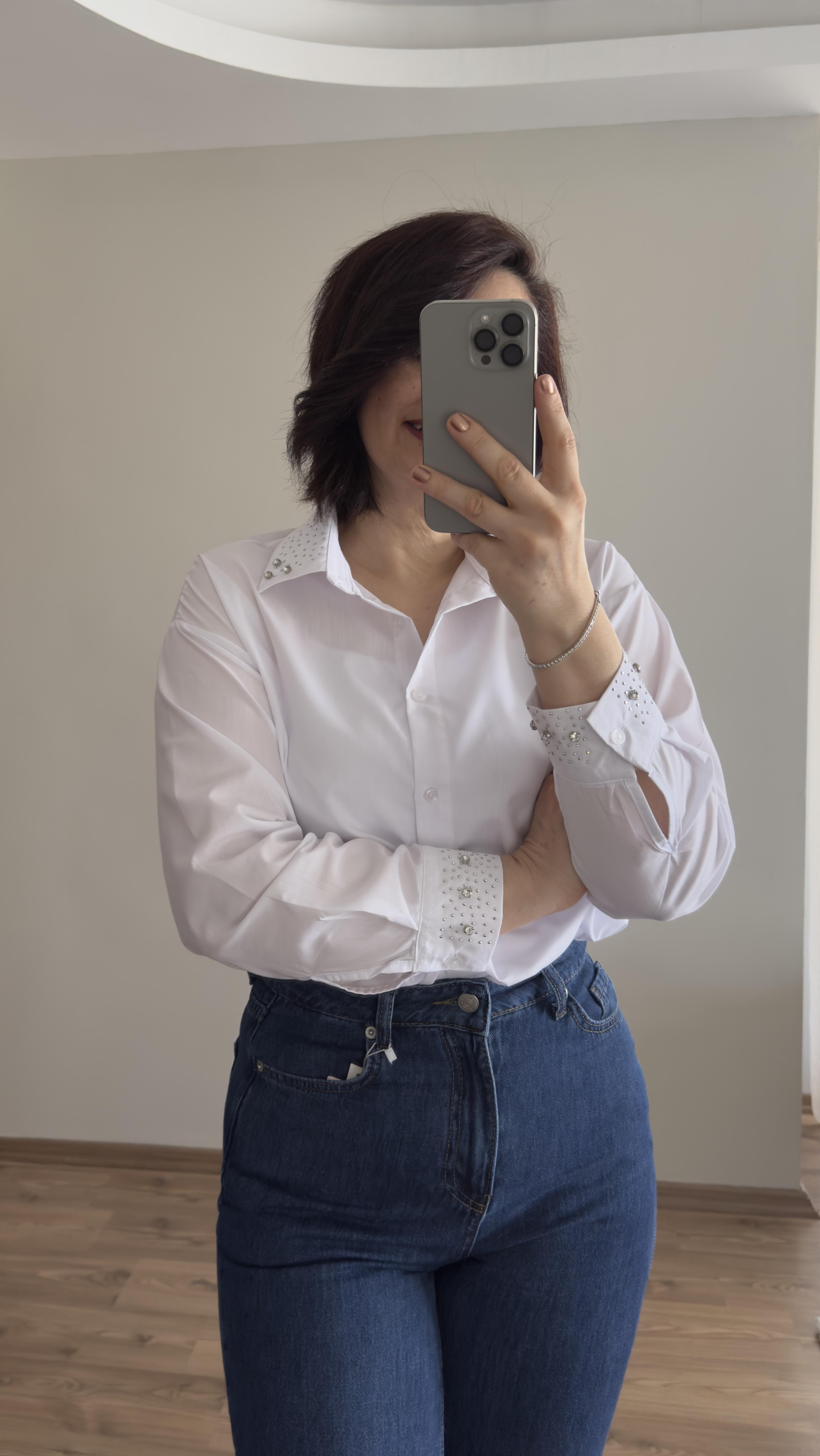 Yaka ve Kolu Taş Detaylı Gömlek